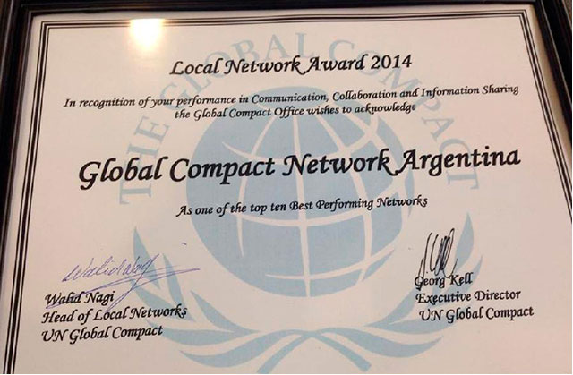 El camino trazado nos llevó a integrar en el año 2013 la Mesa Directiva de la Red Argentina del Pacto Global. Junto al resto de las organizaciones miembro, fuimos responsables de conducir la iniciativa por el periodo Diciembre 2013- Diciembre 2015 con el acompañamiento de las Agencias del Sistema de Naciones Unidas (PNUD, OIT y CEPAL) y el ejercicio del Punto Focal por parte del PNUD.